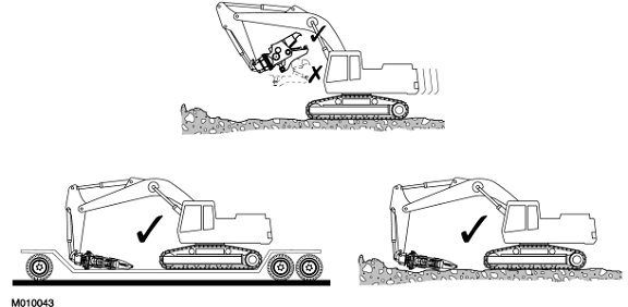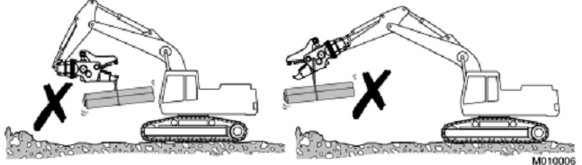 - La mutarea excavatorului nu trebuie sa se foloseasca forfeca ca in figura de mai jos: