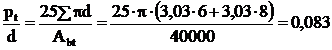 Verificarea conditiei pt/d > (pt/d)min nu poate fi facuta in mod direct deoarece barele au diametre diferite. De aceea, in baza relatiei (3), raportul pt/d se calculeaza in mod indirect dupa cum urmeaza: