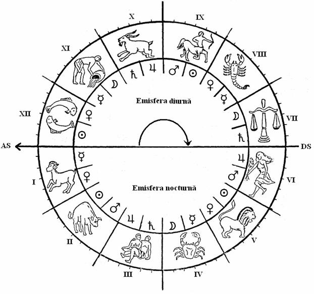 corespunzând câte o Casa Astrologica. De la ora apusului începând, o