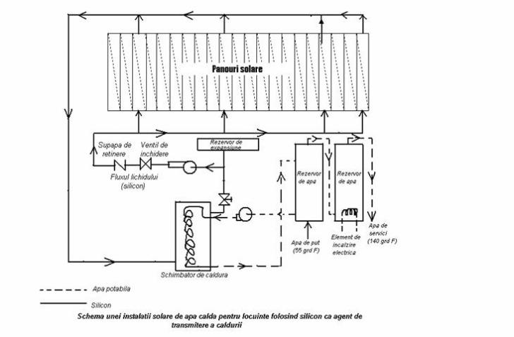 Siliconul s-a dovedit a fi fluidul ideal de transmitere a caldurii in cazul unei instalatii de apa calda pentru gospodarii cu energie solara.