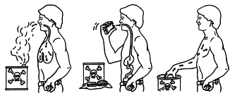 Aceste substante pot provoca, în functie de cantitate, efecte ireversibile dupa o singura expunere, efecte grave asupra sanatatii dupa expunere repetata sau prelungita, cât si efecte mutagene cancerigene sau teratogene prin inhalare, înghitire sau pâtrundere prin piele. Unul din cele trei simboluri se poate utiliza si pentru substantele si preparatele sensibilizante, cancerigene, mutagenice sau toxice pentru reproducere. |