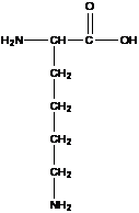 LIZINA (acidul α,ε-diaminocapronic) separata din hidrolizatele de cazeina de catre Drechsel in 1889 si obtinuta prin sinteza de catre E. Fischer in 1902. Se intalneste in proteinele animale, insa poate fi prezenta si in proteinele vegetale dar in cantitati neinsemnate, de exemplu in zeina si gliadina. Lizina fiind un aminoacid esential, organismul este foarte sensibil la carenta acestuia in alimentatie. Lizina este decarboxilata de unele microorganisme cu formare de cadaverina, o diamina toxica.