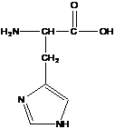HISTIDINA (acidul β-imidazolil-α-aminopropionic) este un acid diaminomonocarboxilic heterociclic si a fost izolat din hidrolizatele acide ale protaminei prezente in sperma sturionilor (1896). Histidina este prezenta in hemoglobina in cantitati relativ mari; a fost izolata din ficat, sange, plamani, leucocite.