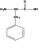 FENILALANINA (acidul β-fenil-α-aminopropionic) izolata din plantele de lupin (1879) si ulterior obtinuta in laborator. Dupa hidroliza tuturor proteinelor, fenilalanina rezulta in cantitati relativ mici. In proteina animala si vegetala se intalneste numai forma L a fenilalaninei; forma D a aminoacidului a fost identificata in structura unor peptide naturale.