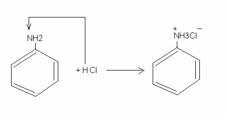 Anilina se dizolva, insa, complet in solutie de acid clorhidric, deoarece se formeaza un compus ionic, solubil in apa :
