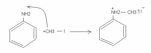 cazul anilinei, capacitatea de fixare a protonului scade, deci bazicitatea