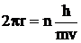 Considerand miscarea electronului in jurul nucleului dupa o traiectorie circulara si admitand ca in deplasarea sa i se asociaza o unda stationara, lungimea de unda a undei asociate trebuie sa aiba o anumita valoare incat distanta parcursa 2pr, sa fie un multiplu intreg n al lungimii de unda de Broglie (fig. 8):