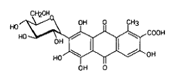 Acest compus este o glicoliza antrachinonica si contine cativa acizi in centru; primul pas in disociere se gaseste catre acidul carboxilic in pozitia 2 (pk 0=2,9) care este cel mai acidic loc.