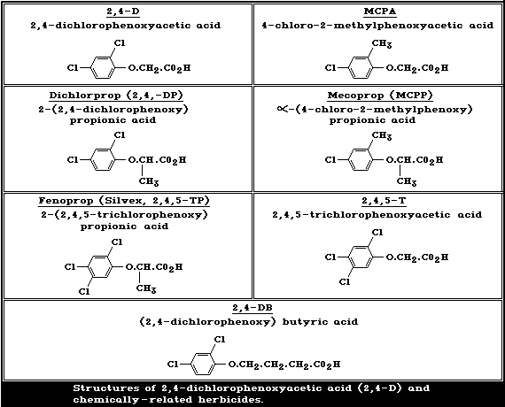 Atat pentru faptul ca au un pret de cost scazut ,dar mai ales pentru ca au o puternica actiune biologica ,se folosesc frecvent preparatele 2,4Dsi MCPA din grupa acizilor fenoxiacetici.Au proprietati toxice pentru om si animale .