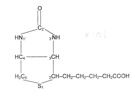 Biotina are formula empirica C14H18O3H2S si urmatoarea forma dezvoltata: