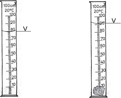 Se toarna in cilindrul gradat apa distilata pana la un nivel cel putin egal cu inaltimea probei de incercat . Se citeste volumul V1.