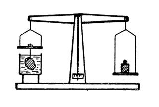 Proba de analizat se cantareste la balanta hidrostatica, in aer, notandu-se cu m1 masa acesteia. Se suspenda proba cu ajutorul firului sub talerul balantei hidrostatice, se imerseaza in vasul cu apa distilata si se cantareste din nou , notandu-se cu m2 masa probei.