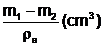 Se calculeaza diferenta volumelor V2 si V1 ce reprezinta volumul probei. Se calculeaza densitatea cu o precizie de trei cifre semnificative, in g/cm3 si se transforma in kg/m3 .