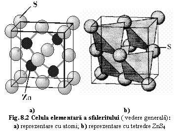Coordinarea -4 (tetraedrica) atât pentru Zn, cât si pentru S (fig. 8.2);