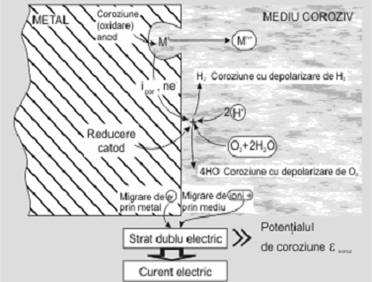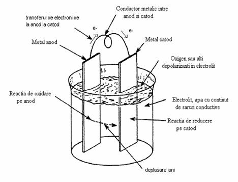 Prin introducerea metalului in apa sau in mediul cu proprietati electrolitice, pe suprafata metalului apar elemente galvanice in care impuritatile din metal functioneaza ca microcatozi cu descarcare de hidrogen pe suprafata lor, in timp ce metalul, functionand ca anod se dizolva.