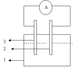 Se curata electrodul de zinc si cel de cupru cu hartie de smirghel. Se fixeaza electrodul de zinc paralel cu cel de cupru si se introduc in paharul cu mediul coroziv, NaCl 3%, ce reprezinta un mediu marin simulat. Cu ajutorul surubului de prindere se fixeaza placuta de cupru pentru suprafata maxima in solutie. Se fac legaturile la miliampermetru (fig. 4.6.1.2). Se noteaza variatia curentului din minut in minut timp de 10 minute.