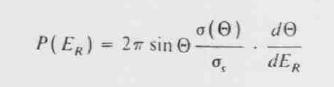 Unde σs este sectiunea macroscopica totala de imprastiere integrata pe tot volumul. Ne intereseaza mai mult distributia energiei nucleelor de recul definita de P(ER)dER, probabilitatea de realizarea a unui recul cu energia in dER si ER. Acum, pentru ca P(ER)dER= P(θ)dθ putem scrie urmatoarele :