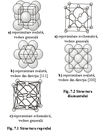 - atomi metalici pozitionati în vârfurile celulei elementare cubice si în centrele fetelor (fig.7.1 a, b);