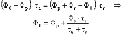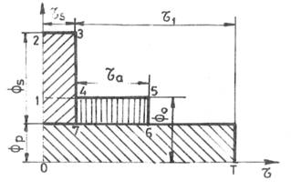 Valoarea puterii frigorifice Ф0 a acestei instalatii se determina din conditia ca în perioada τa cantitatea de frig acumulata, aria 4,5,6,7, sa fie egala cu necesarul de frig corespunzator suprasarcinii, aria 1,2,3,4. Matematic aceasta corelatie între cele doua cantitati de frig, se poate scrie sub forma: