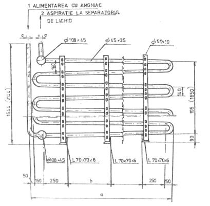 Schema construnctiva a unui asemenea vaporizator, produs de Frigotehnica Bucuresti, este prezentata în figura.