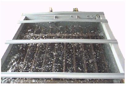 Bazinul pentru decongelare asigura topirea suprafetei blocului de gheata care adera la formele metalice si asigura astfel desprinderea blocului de gheata.
