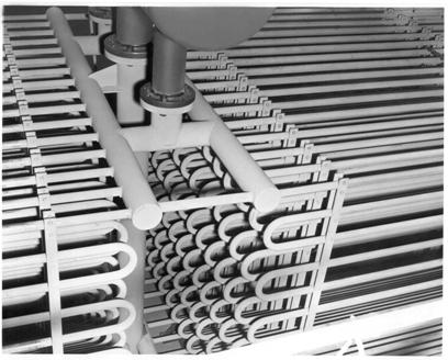 Constructia acestor vaporizatoare permite acumularea de gheata în cochilii, având diametrele mai reduse decât distanta dintre tevi, pentru ca aceste cochilii sa nu se uneasca între ele, ceea ce ar duce la formarea unor blocuri de gheata, care s-ar topi mult mai greu în perioada de suprasarcina.