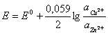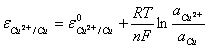 Tensiunea electromotoare a pilei respecta relatia lui Nernst: