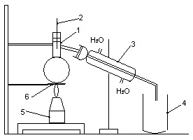 - in balonul Wurtz se introduce o cantitate de amestec egala cu ½ din capacitatea balonului si cateva bucati de portelan poros pentru omogenizarea fierberii. Se monteaza apoi termometrul, a carei scala sa fie astfel aleasa incat sa poata masura cel mai ridicat punct de fierbere al componentilor amestecului, avand grija ca bazinul cu mercur sa ajunga pana in dreptul tubului lateral al balonului de distilare. Se ataseaza apoi refrigerentul, se alimenteaza cu apa si la iesire se plaseaza vasul de culegere.
