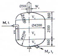 Intr-un cazan de fierbere Huppmann combinat cu Whirlpool, cu dimensiunile din fig. 4.10, prevazuta cu schimbator de caldura exterior se introduce 380 hl must de bere la temperatura de 750 C si extract 11%. Încalzirea pana la temperatura de fierbere dureaza 0,5 h, iar fierberea propriu-zisa 1,5 h. Extractul final este 12%, temperatura de fierbere este 102,5oC, iar presiunea aburului de incalzire 5 bar.