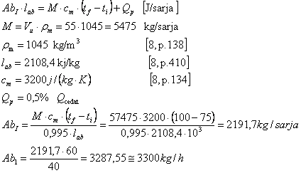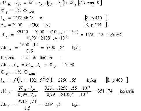 Debitul de abur necesar se determina din ecuatiile de bilant caloric intocmite pentru faza de incalzire si pentru faza de fierbere.