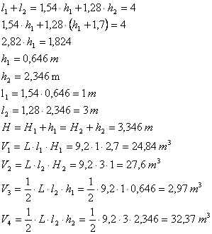 Pentru calculul volumelor V1,V2,V3, si V4 avem nevoie de dimensiunile l1,h1, si l2,h2.