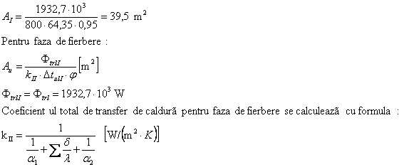 Dimensionarea se va face pentru faza de incalzire la temperatura de fierbere, intrucât în faza de fierbere propriu-zisa, fierberea nu are loc în tevi ci prin detenta în cazan.