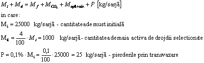 Din bilantul de materiale se determina cantitatea de must fermentata pe sarja: