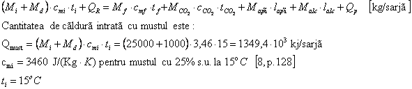 Din ecuatia de bilant caloric se determina temperatura finala a mustului fermentat, în conditiile în care nu se intervine cu racirea mustului în timpul fermentatiei.
