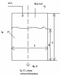O cisternv de fermentare de forma cilindrica verticala, cu fund si capac plan, construita din tabla de otel inoxidabil are diametrul D=3 m si înaltimea H=6 m. În ea are loc fermentatia mustului de struguri cu 210 g/l zahar pe o durata de 5 zile. stiind ca coeficientul de umplere a cisternei este de 75.80%, sa se determine temperatura la care ar ajunge vinul la sfârsitul fermentatiei alcoolice daca acesta nu este racit in timpul fermentatiei. Temperatura initiala este 20oC. Vinul fermentat nu mai are zahar remanent si se considera ca glucidele fermentescibile sunt consummate astfel: 92% pentru fermentatia alcoolica, 1% pentru respiratie, 3%pentru formare de biomasa si 4% pentru formarea produsilor secundari.