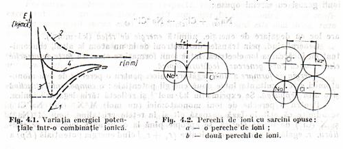 Variatia energiei potentiale totale a sistemului M+X- prezinta un minim (curba 3, fig.1)la distanta de echilibru între ioni ce corespunde stabilitatii maxime (în cazul NaCl, dist de echil. este de 0,276 nm).