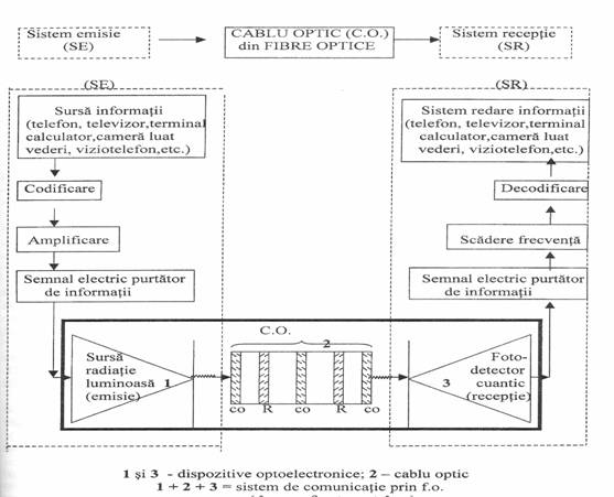 FIBRE OPTICE - cel mai eficace mijloc de transmitere a informatiilor la distante mari, chiar īn spatii greu accesibile sau īn conditii periculoase. Īnlocuiesc transmiterea semnalelor electrice cu semnale luminoase modulate unde radiatia propagata nu poate fi bruiata. Fata de mijloacele conventionale, transmiterea informatiilor cu ajutorul luminii are o capacitate teoretic nelimitata si pregateste trecerea spre tehnologiile mileniului III.