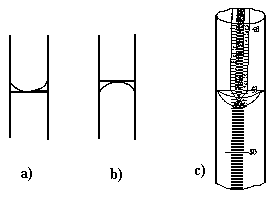 a) menisc concav (pentru lichidele care uda peretii vasului);