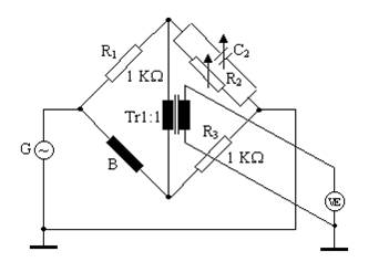 unde Z1 si Z3, respectiv Z2 si Z4 sunt impedantele de pe laturile opuse ale puntii, atunci tensiunea masurata de voltmetrul electronic VE este nula, indiferent de valoarea amplitudinii semnalului sinusoidal al generatorului G. Tinand cont de acestea masuratorile se vor efectua in felul urmator: