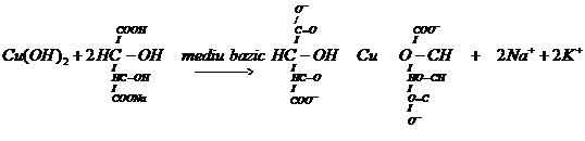 Hidroxidul cupric este in prealabil dizolvat in tartrat dublu de sodiu si potasiu sub forma de complex cupro-tartric.