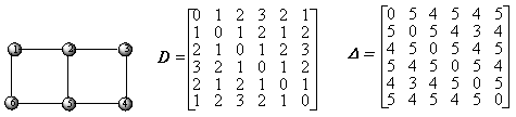 Pentru orice tip de graf un invariant important este reprezentat de matricea de distante D. Prin definitie elementele matricei D sunt reprezentate de cele mai mici cai (distantele dij) dintre oricare pereche de varfuri conectate [14, 18, 50, 58-68].