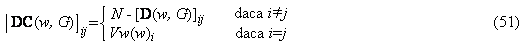 Dupa cum este bine cunoscut in cazul unei matrici de distante D, valoarea unui element ij este egala cu suma muchiilor pentru cea mai scurta cale dintre doua varfuri vi si vj ale unui graf G. Avand la baza aceasta definitie Randic defineste [116] pentru prima data matricea distantelor complement DC in cazul alcanilor. Matricea de distante complement DC(w) = DC(w, G) pentru un graf G cu N varfuri este o matrice simetrica patrata N×N care se poate defini [59, 117] cu ajutorul ecuatiei 51: