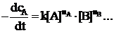 Aceasta reactie arata ca viteza de reactie este proportionala cu produsul concentratiilor substantelor care reactioneaza ridicate la o putere nA, nB, Exponentii concentratiilor poarta numele de ordin partial de reactie si anume nA este ordinul de reactie partial in raport cu substanta A iar nB in raport cu substanta B. Suma ordinelor partiale de reactie se numeste ordinul total (global) de reactie: nA + nB + = n