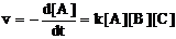 Reactii de ordinul III. Ciocnirea concomitenta a trei molecule cu formare directa de produsi este un caz mult mai rar intalnit, de aceea si asemenea reactii sunr rare. De regula, reactiile de ordinul III sunt complexe, deci decurg in etape. Cazul cel mai simplu este: