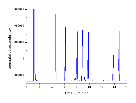 cromatografica a unui amestec de hidrocarburi. Fiecare pic cromatografic reprezinta