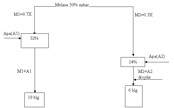 Pregatirea melasei cuprinde operatiile de diluare cu apa, neutralizare si acidulare, adaugare de saruri nutritive, limperizire si sterilizare (pasteurizare). Plamada principala se dilueaza pana la 30-34% extract, iar plamada de drojdie pana la 12-16 % extract.Cele doua plamezi pot avea si aceeasi concentratie in extract de 23 %.