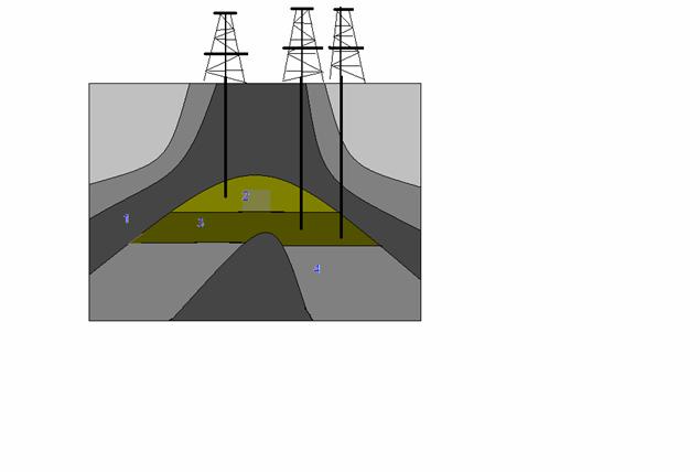 1. roca impermeabila, 2. gaze, 3. petrol, 4. apa sarata