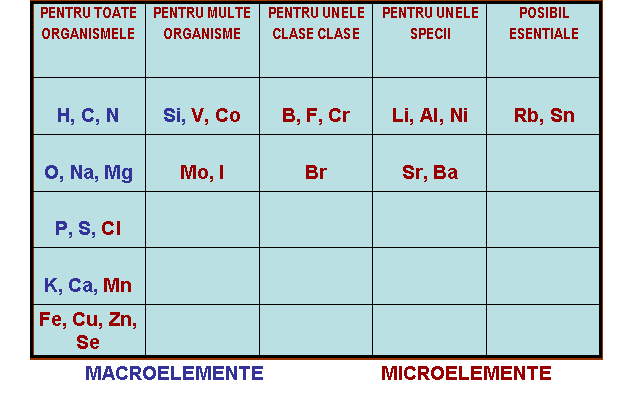 Elementele potential toxice sunt (în general) necesare în cantitati foarte mici (celulelor) organismelor vii (tab.1).