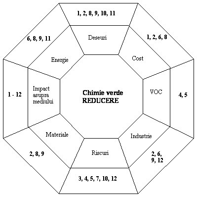 Figura 1. Efectul aplicarii principiilor chimiei verzi asupra factorilor care guverneaza un proces tehnologic