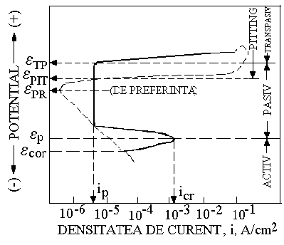 potentialului de pitting (e ePIT) al metalului în mediul dat. Cu cât este mai apropiat
